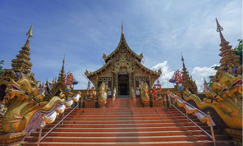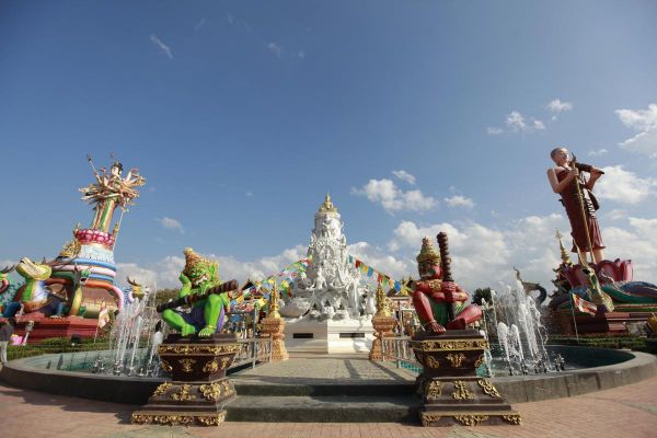 ภายในวัดมีการจัดสวนสีเขียวแบบทรอปิคอล มีการพ่นไอน้ำออกมาโดยรอบ บรรยากาศงดงามชวนฝันมาก